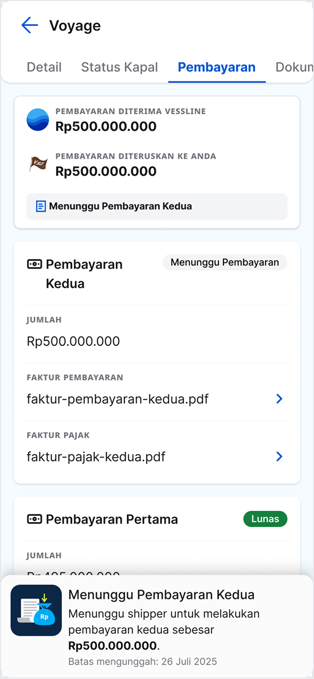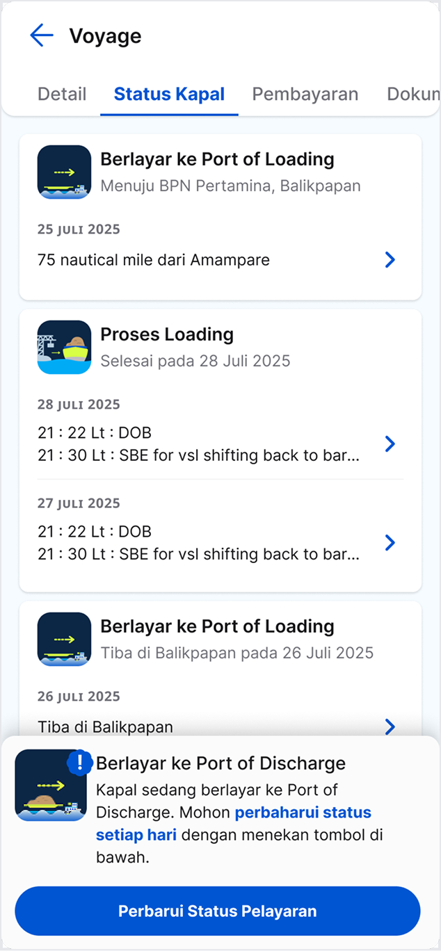 Kami menyediakan fitur manajemen voyage yang komprehensif untuk memudahkan operasional kapal Anda. Monitor status pengiriman secara real-time, kelola dokumen dengan rapi, koordinasi dengan pengirim, dan pastikan pembayaran aman melalui sistem escrow yang melindungi kedua belah pihak.